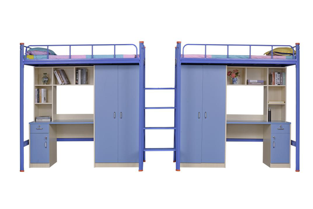 東莞振華家具學生宿舍組合床,采用優質的冷軋鋼打造,立柱采用中空異型材,內外皆可酸洗磷化,不易生銹。卡扣式鏈接更加牢固,拆裝方便。而我們的學生宿舍組合床由床、書桌、衣柜、書柜和梯子等組成,不僅大大的節省胃宿舍空間的利用,還使宿舍看起來更加整潔美觀舒適。